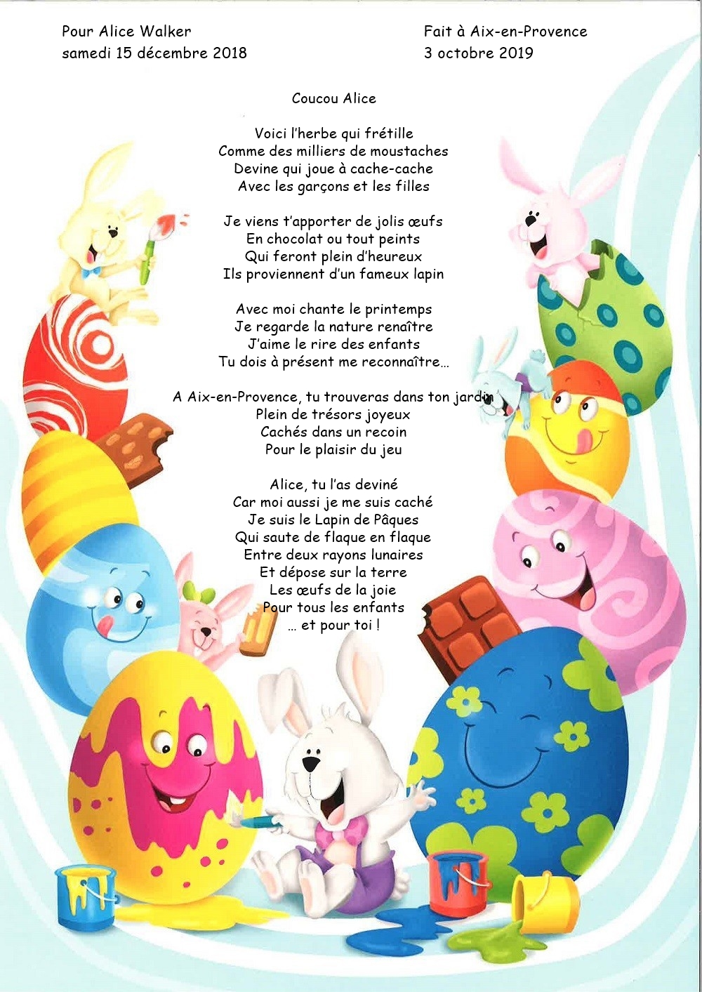 Quoi de plus magique que de recevoir la lettre du lapin de Pâques ? Un poèmes avec les rimes au prénom de votre enfant